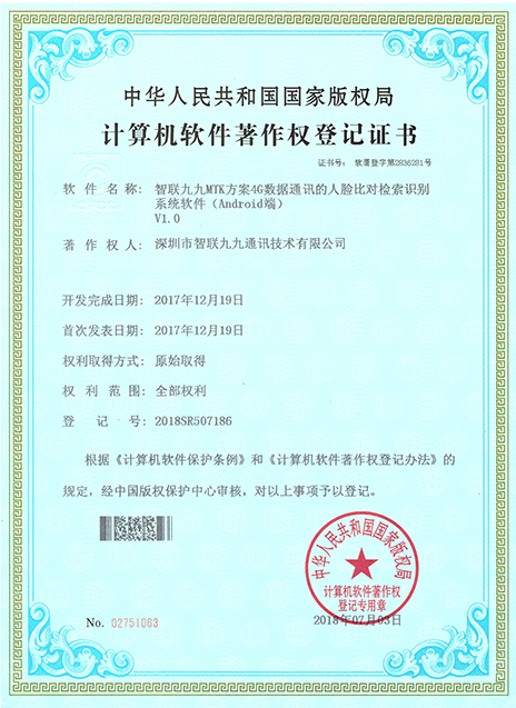 智联九九MTK方案4G数据通讯的人脸比对检索识别系统软件